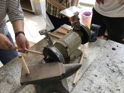 3,4年生の先生が運動会で子どもたちが使うバチの先を丸く加工していました。子どもたちがケガをしないようにするためです。9月30日の運動会が楽しみです!!