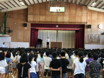 始業式 公開日 2017/09/01 更新日 2017/09/01 日々のページ 非常に落ち着いた雰囲気の中、体育館で始業式が行われました。校長先生からスローガンである「元気に登校、笑顔で下校」というだけでなく、「『げんき』と『えがお』を多くの人に『とどける』ことを目標にした2学期にしましょう!」という話がありました。また、生徒指導の先生からは「できるだけ早く生活のリズムを戻して、元気よく登校しましょう!」という呼びかけがありました。 いいね(0)