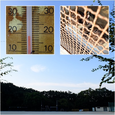 今朝は青空がののぞいています。気温も20度を下回り,気持ちのよい朝です。うさぎも仲よく2羽そろっています。