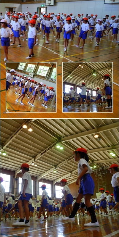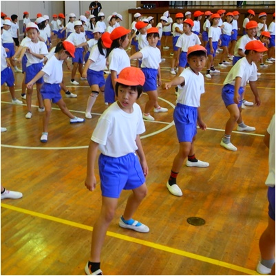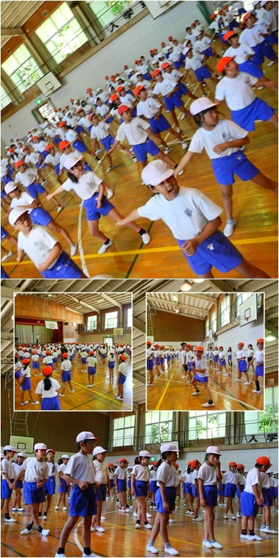 この夏よく耳にした「海の声」のメロディに合わせて,3・4年生が運動会で披露する演技の練習をしています。ステップを踏みながら手作りの太鼓(今はまだ持っていませんが・・・)を叩きます。