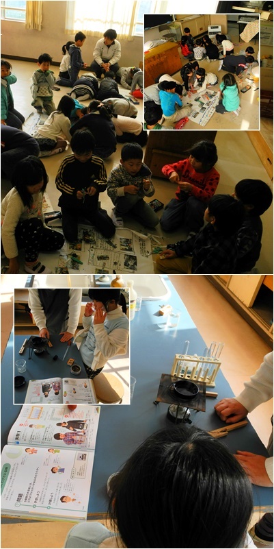 6年生 水溶液の性質を調べる実験です。無色透明の水溶液がなんであるのか,蒸発させたり,においをかいだり,リトマス紙を使ったり,金属を入れてみたり・・・,さまざまな方法で液体を見分けます。