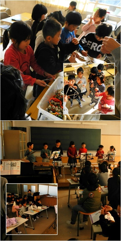 1年生はトライアングルと鈴の演奏について学んでいます。この後,合奏ができるようにしていきます。