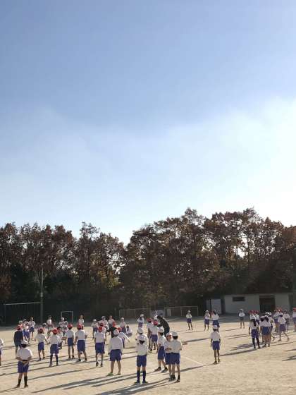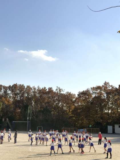 5時間目、持久走を走り終えた4年生がグランドでドッチボールをやっています。大きな歓声が響くなど、みんな本当に楽しそうです!