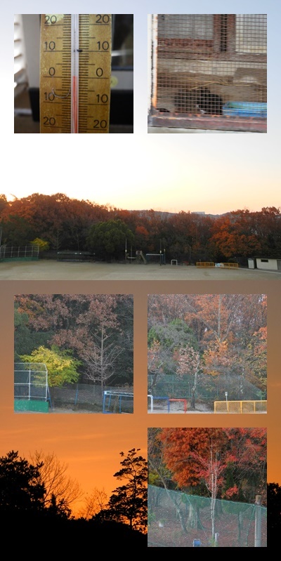 快晴です。3階より運動場をのぞみました。また違った景色です。日が昇る前,南東の空が赤く染まりました。