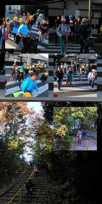 初冬の登校,落ち葉を踏みしめる音が響く中,坂を上ります。
