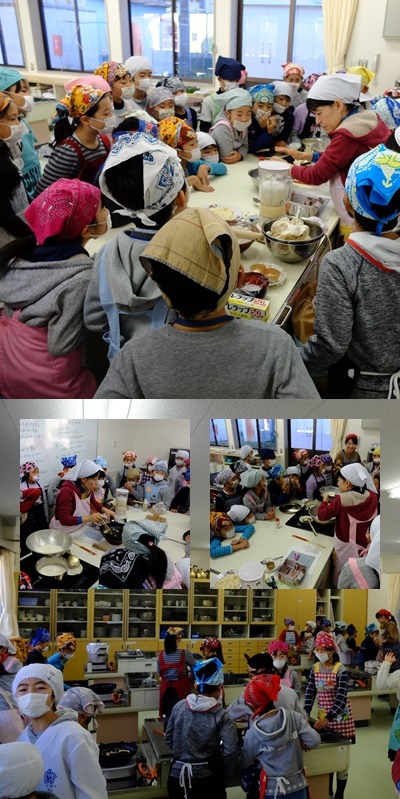 2時間目,3年生が家庭科室で国語の勉強をしていました。単元は「すがたをかえる大豆」です。さまざまな調理方法ですがたをかえる大豆を取り上げて,説明文について学びます。そのまとめとして,栄養教諭・担任の二人でチームを組んで調理実習を行いました。