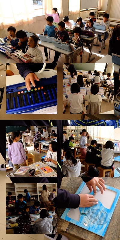 1年生の一クラスはけん盤ハーモニカで「きらきらぼし」の練習をしています。正しい指使いで音を聞きながら合奏ができます。