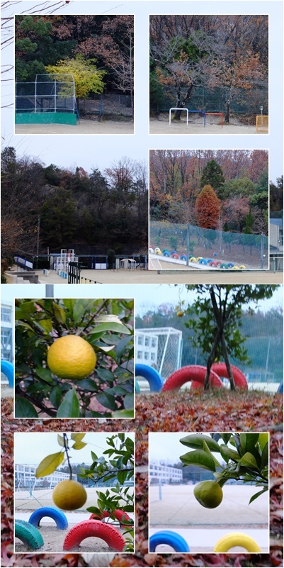 学校の周りを囲む林は色を少しずつ失っていくようです。運動場西に植えられた柑橘系の実が色づいてきました。とても鮮やかです。