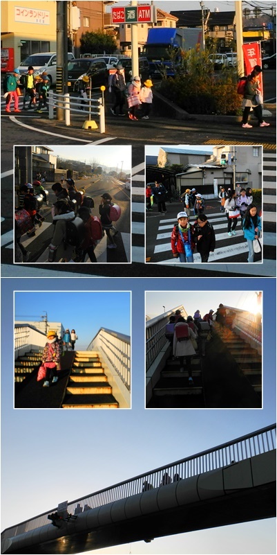 登校時間,まぶしく陽射しが届いています。吐く息は白いですが,陽の当たるところにくると暖かく感じます。