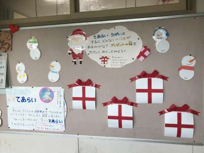 12月に入って保健室前の掲示板が新しくなっています。2学期も残り2週間です。手洗い、うがいをしっかりして、みんなが元気に登校してほしいと願っています。ご家庭でも声かけをお願いします。