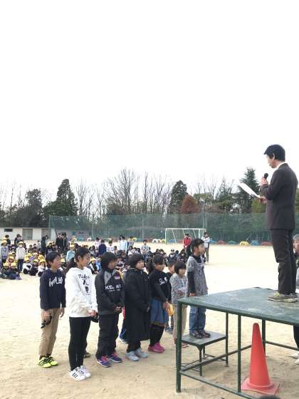 寒い朝でしたが朝礼で、先日行われた持久走大会の表彰が行われました。入賞した子どもたちへの表彰はもちろんですが、校長先生から「みんな頑張ったから、自分に対しても大きな拍手をしてあげてください!」というメッセージも伝えられました。