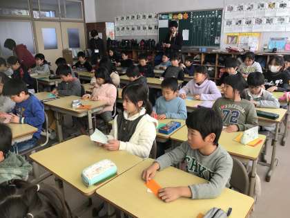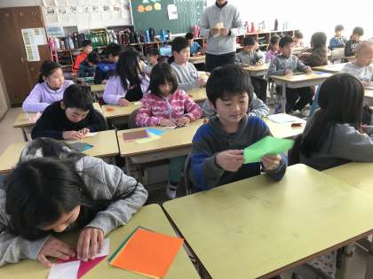 講師の先生の指示通りに折っていくだけで1枚の折り紙がさまざまな物に変化していきます。その様子が楽しくて子どもたちからは歓声があがります!