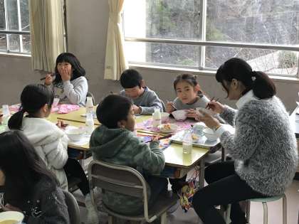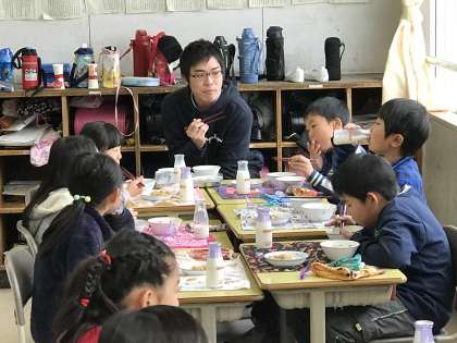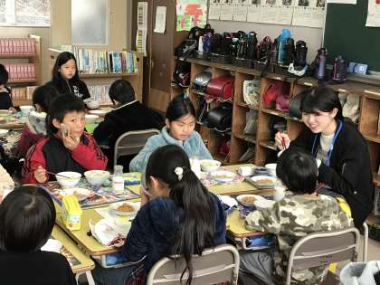 給食の様子 公開日 2017/12/19 更新日 2017/12/19 3年生 理科の授業をしてくださる大学生のお兄さん、お姉さん達と一緒に給食を食べています。いつもとは違い、少し照れているかもしれません。写真は3年生です。 いいね(0)