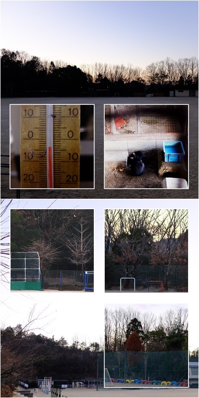 今朝も冷え込みました。すっかり冬の装いです。校舎からながめる南の林はすっかり葉を落とし,合間から空がのぞきます。気温も氷点下3.5度ほどです。うさぎが穴に入り込もうとしていました。