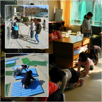給食後の清掃時間の様子です。 掃き掃除,雑巾がけ,分担された仕事にしっかりと取り組んでいます。