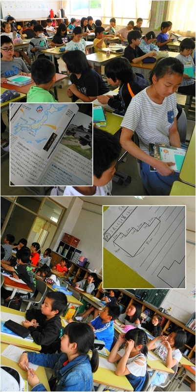 2組は算数です。複雑な面積の求め方を言葉で伝えます。