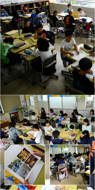 1組は,先日の校外学習のまとめ「新聞づくり」をがんばっています。なんだか頭を抱えている子もいますね。