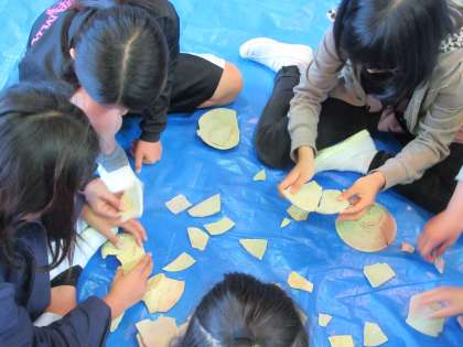 6年出前授業 公開日 2018/05/09 更新日 2018/05/09 6年生 6年生では、埋蔵文化財センターから2人の方を講師にお招きして、出前授業を行いました。瀬戸市内で発掘された陶器などの出土品について、講師の方から説明を聞いた後、出土品に実際に触れてみたり、かけらを組み合わせて出土品の形を復元してみたり、2時間の授業があっという間に過ぎました。 いいね(0)