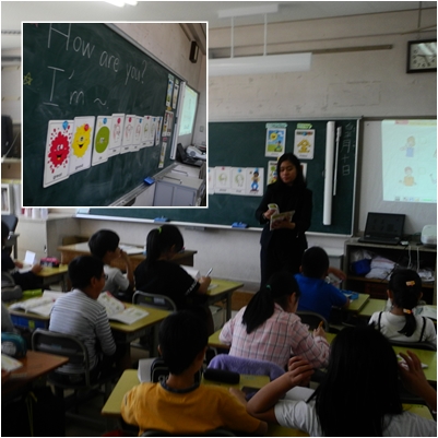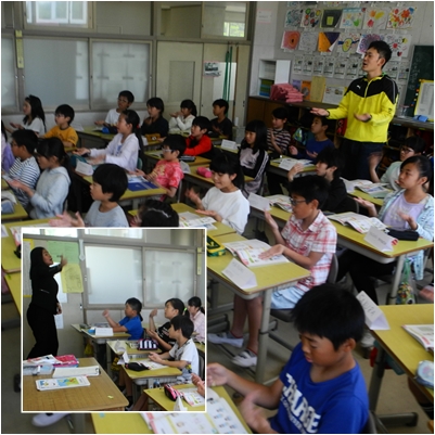 5年生が,音楽に合わせ手遊びをしながら,英語の曲を歌っていました。担任とALTの方の動きがシンクロしていました。