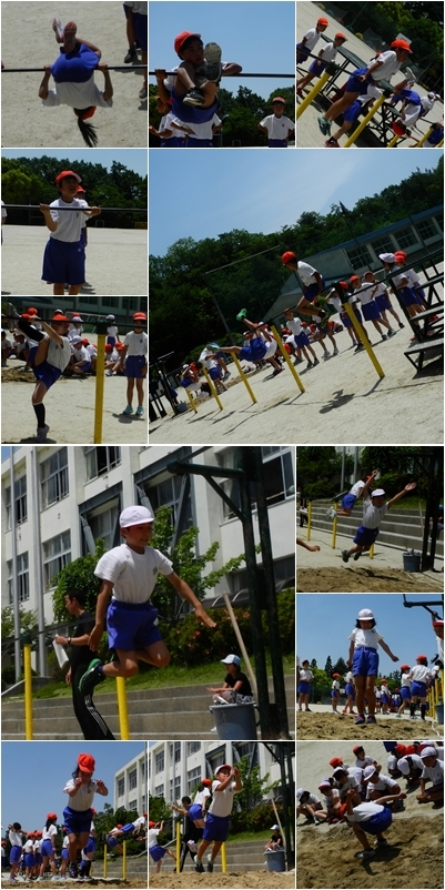 1組は立ち幅跳びです。空中の姿勢がかっこいいですね。