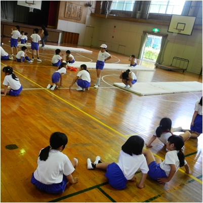 4時間目は,4年生2組が体育館でマット運動を行っていました。