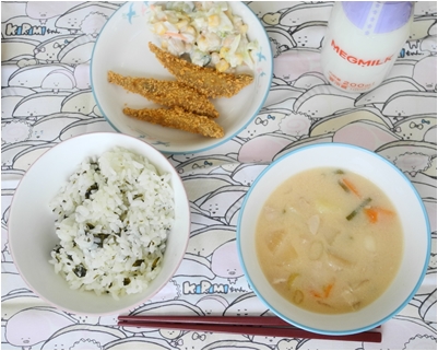 給食 4年生 公開日 2018/05/15 更新日 2018/05/15 日々のページ 今日の給食はには応募献立「大豆のサラダ」がつきました。これは幡山東小の保護者の方のレシピです。実際には大豆ではなく納豆を炒めてサラダに和えるとのことです。給食では納豆を調理して使うことはできないので大豆となりました。 とてもおいしかったです。 写真は4年生の給食の様子です。 いいね(0)