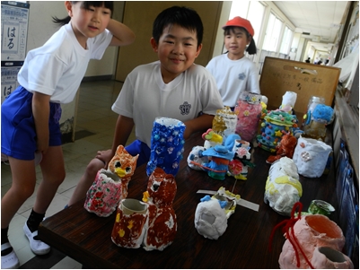 3年生の図工作品 公開日 2018/05/16 更新日 2018/05/16 日々のページ 紙粘土を使って作った作品がクラス前の廊下に展示されています。 入れ物の形をいかし,色合いを工夫し,細かなパーツもそれぞれの感性で選んでいます。すてきな作品ができあがりました。 いいね(0)