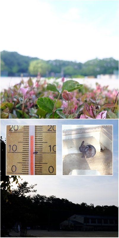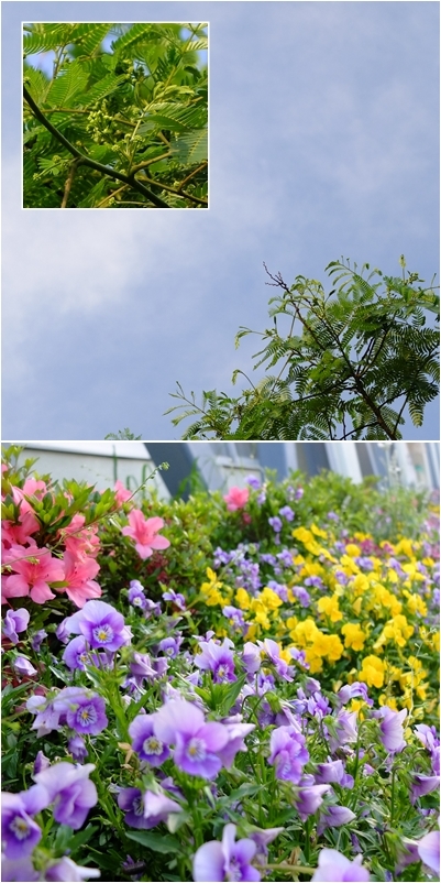 森の教室にある合歓の木に蕾がふくらみ始めました。皐月も加わり校舎前の花壇がとてもにぎやかです。