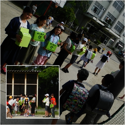 朝早くより,児童会が募金活動に取り組んでくれています。