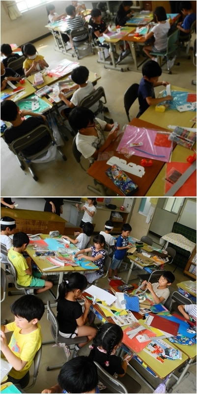 2組・3組は図工の作品制作に取り組んでいます。