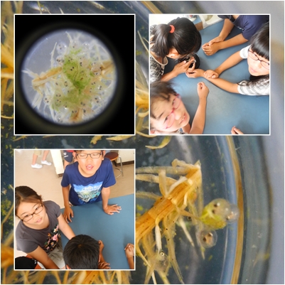 メダカの卵の観察をしました。 公開日 2018/05/18 更新日 2018/05/18 日々のページ 4時間目,理科室ではメダカの卵の観察が行われていました。水草についたメダカの卵を解剖顕微鏡を使って観察します。 目玉はもちろんですが,よ〜く見ると心臓の動きや血液の流れまで見えることもあります(写真は5年生です)。 いいね(0)
