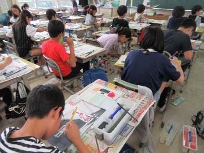 6時間目、6年生は2クラスとも図画工作の授業でした。本日の内容は、「もーやっこ祭」のポスター制作です。お祭りの様子やイメージをしっかりと描けていました。