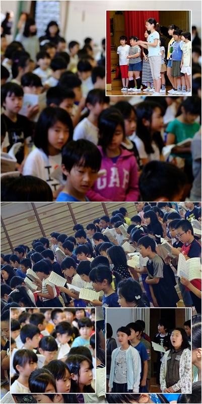 最後は元気に「あの青い空のように」を全校合唱です。