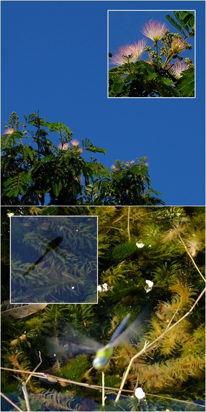 合歓の木が一気に花を咲かせ始めました。池の上をギンヤンマが飛んでいます。夏がやってきています。