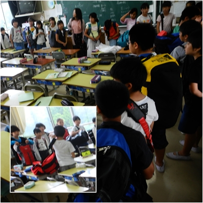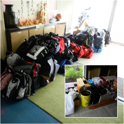 荷物チェックを終え,バッグやリュックサックを1階まで運びます。