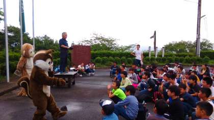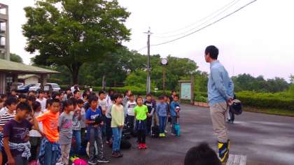 早いペースでハイキングを終え、清々しい顔で野外センターに到着しました。入所式では、所長さんはじめモンキチくんとリリーちゃんからも、センターでの注意事項を聞きました。耳を済ますと、ホトトギスのさえずりが聴こえます。自然に親しみながら安全に過ごせる2日間になればと思います。