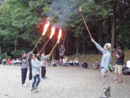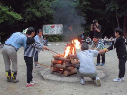 野外活動その9《キャンプファイヤー1》 公開日 2018/06/07 更新日 2018/06/07 5年生 校長先生のお話の後、厳かな雰囲気の中、井桁への点火が行われました。いよいよキャンプファイヤーの始まりです。 いいね(0)