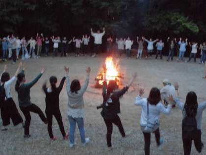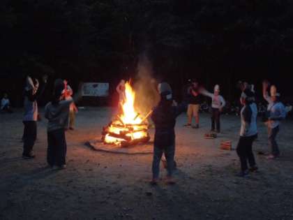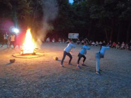 野外活動その10《キャンプファイヤー2》 公開日 2018/06/07 更新日 2018/06/07 5年生 点火の儀式の後は、グループごとのスタンツです。寸劇やダンス、ゲーム、クイズなど、どのグループも工夫を凝らした内容で大変盛り上がりました。スタンツの合間には、フォークダンスや先生たちによるゲームなども行われました。 いいね(0)