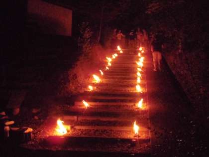 キャンプファイヤーの締めくくりには、これからも前向きな活動をしていこうという宣言の後、「遠き山に日は落ちて」を歌いながら、炎に照らされた階段を上って、キャンプファイヤーは終了しました。
