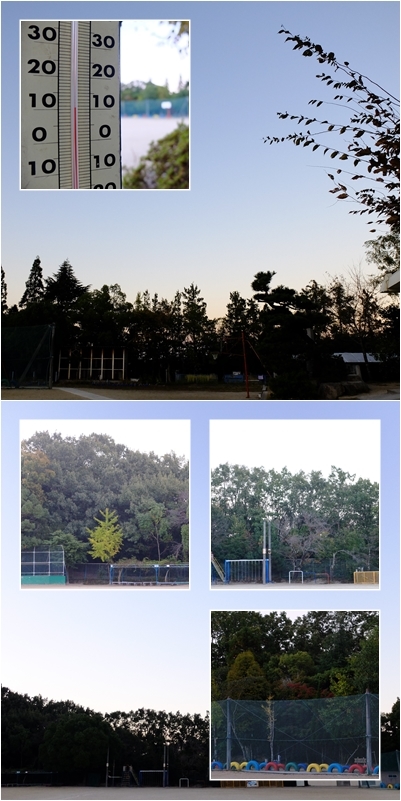 今日も秋晴れの一日になりそうです。校門横の桜が葉をほとんど落としました。