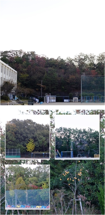 校地東側の森の色づきも進みます。柿も熟れてきています。