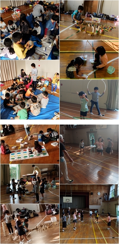 業後は体育館で移動児童館≪わくわくタイム≫が開催されました。たくさんの子が「あそび」を楽しませてもらいました。ありがとうございます。