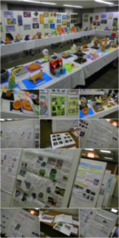 文化センターでは特別支援教育展,科学展が開催されています。たくさんの作品が展示されています(写真には本校児童の作品の一部が載っています)。