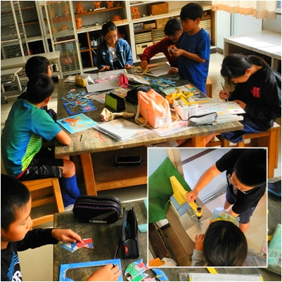 糸のこぎりを使ってパズルの制作です。
