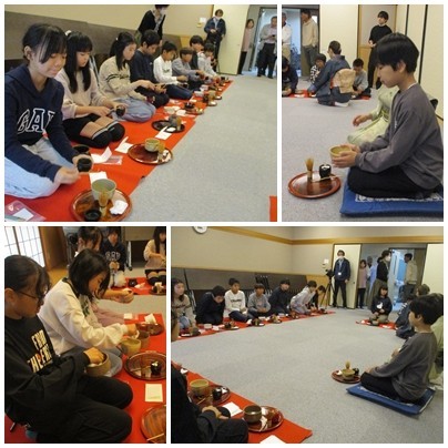 木曜日は6年1組が茶道教室でした。前半と後半のグループに分かれて体験しています。和菓子は、秋らしくもみじ色の和菓子で、今日も地元の和菓子屋さんが特別に作ってくださった物をいただきました。今回の茶道教室は、社会福祉協議会の援助をいただいて行われています。今日は瀬戸市社協の職員の方が身に来られました。(25年ぶりに再会した教え子でした)