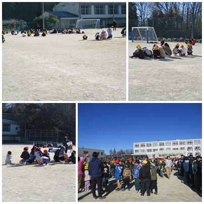 2時間目終了後の休み時間に「緊急地震速報」が放送されました。運動場で遊んでいた人たちは、遊びを止めてその場で身をかがめました。 抜き打ちの避難訓練、落ち着いて行動できました。
