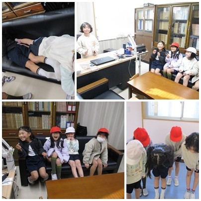 2学期に児童会企画で行われた「宝くじ」、「校長先生のイスに座れるよ!券」の当たりくじを持っていた子が残っていたことが判明しました。一人で校長室に行くのは緊張するかも・・・と心配した友達が付き添って現れました。やさしい友達たちに「校長先生のイスに座らせてあげたい!」と思いましたが、それではくじの価値が下がるので、代わりに校長室のソファーで横になる体験をさせてあげました。実は、私も二度ほど同じ体験をしたことがあります。