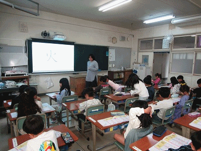 1年1組は、図工の授業でした。箱作りをしていました。1年2組は、道徳の授業でした。教科書を読んでいました。1年3組は、国語の授業でした。漢字の学習をしていました。