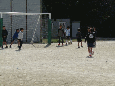 休み時間の様子です。運動場では、青空の下、子どもたちが元気よく遊んでいました。