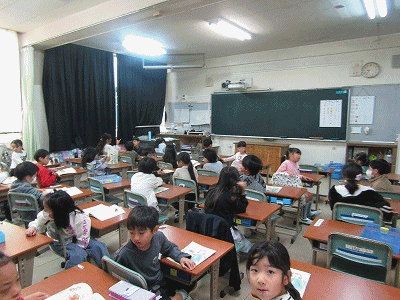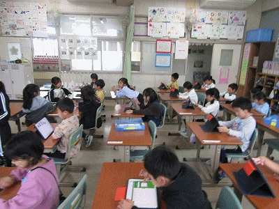 1年生の教室からです。朝の会が行われていました。先生からの連絡、タブレット入力、授業準備などが行われていました。